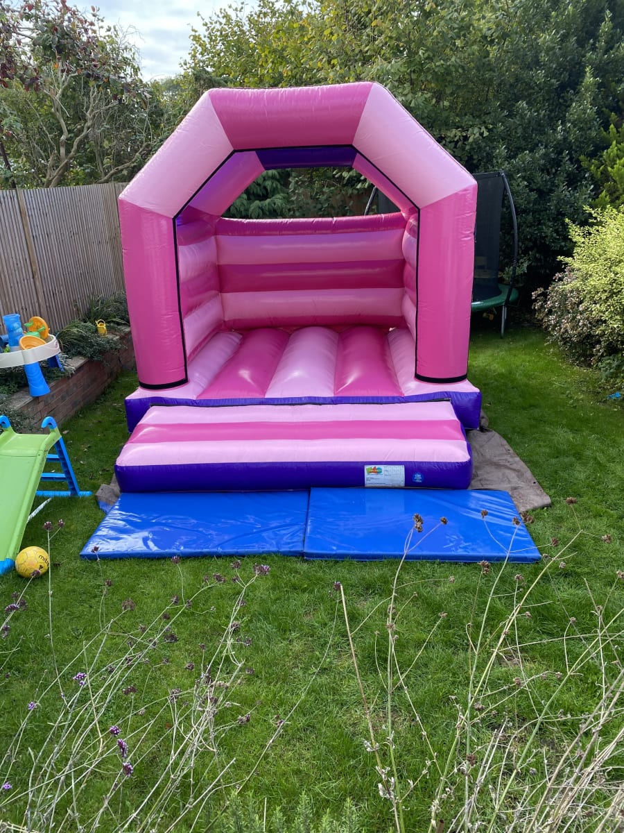 This 14ft x 11ft Pink Bouncy Castle is Pink, Pink and more Pink with a smidgen of Purple