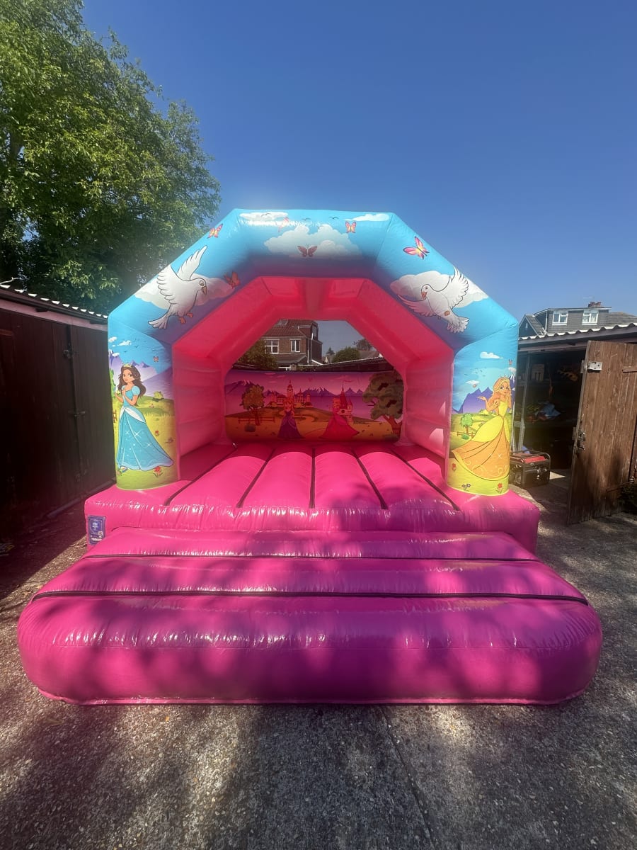 Book our 12ft x 12ft Princess A-Frame Bouncy Castle today and bring the magic of a princess castle right to your doorstep!