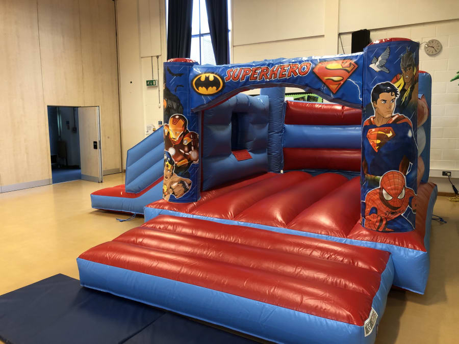 The Super Hero Combo Castle is perfect for most low level ceiling venues, making it ideal for indoor hires.