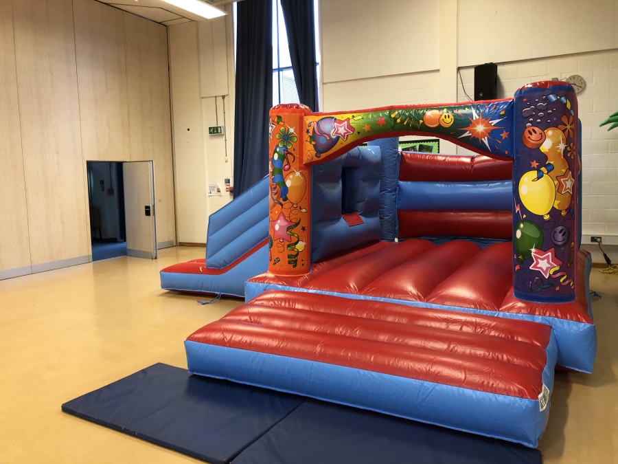The Carnival Side Slide Combo Castle is a low height Castle and will fit in most venues that have low level ceilings, making it ideal for indoor venue hires.