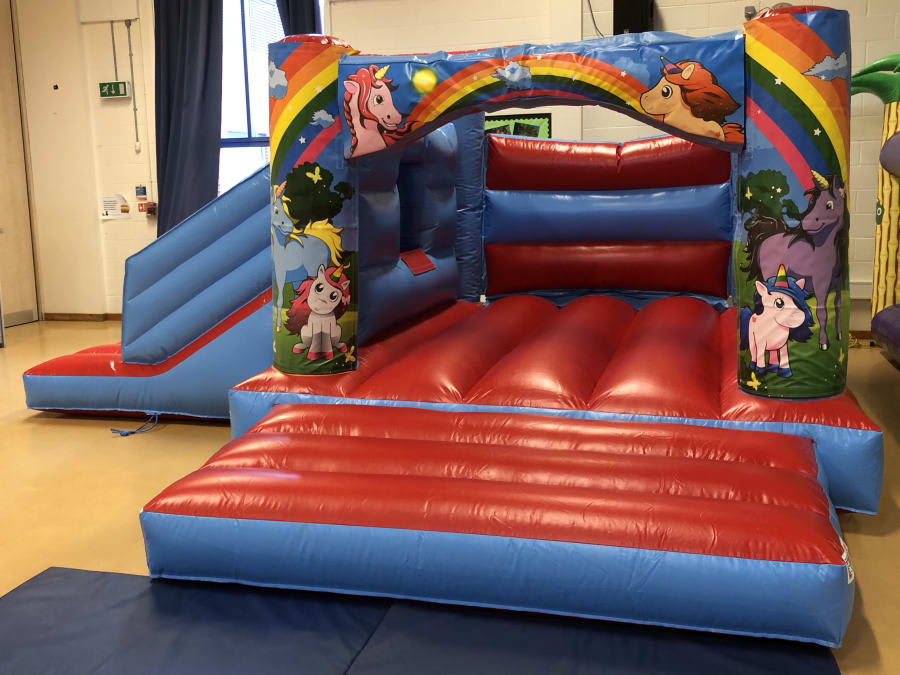 Bubbles Bounce and Plays 18ft x 15ft Unicorn Themed Combo Castle, will give all your children hours of magical bouncing and sliding fun!