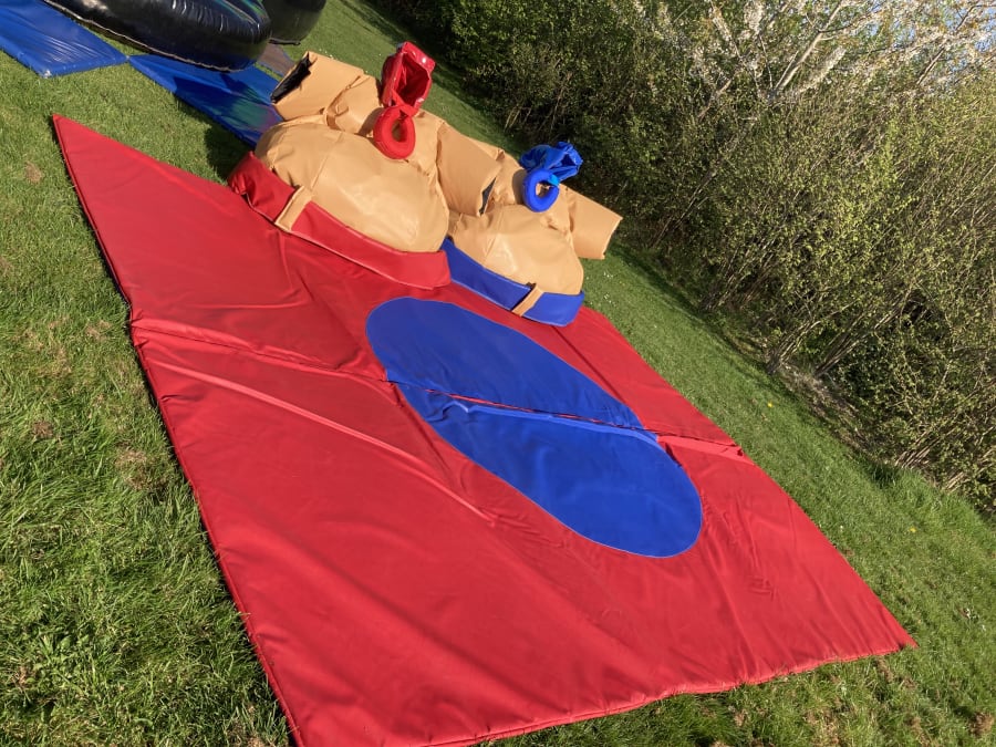 By choosing this product, we will deliver 2 Adult Sumo suits 14 yrs - Adult, 2 helmets, 2 neck braces and a 12ft x 12ft Sumo mat.